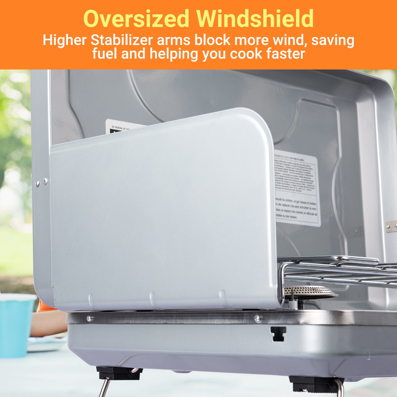 The camping propane stove has two large side supports that keep your flames steady even in high wind.
